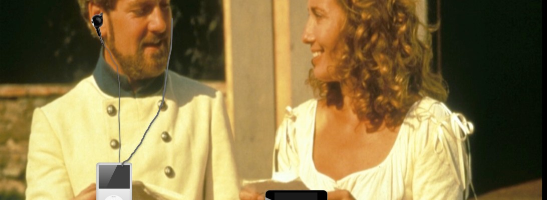 Have you ever met people who go around everywhere with their MP3 players and their earbuds? The kind of people who walk around playing their own personal soundtrack? Well, what do you think would happen if the characters from Much Ado did this, and you happened to glance at Benedick or Beatrice’s iPod? Well that’s what we’re going to pretend in a little game I like to call “Benedick’s Infinite Variety Playlist.” Below is a list of the major events in the play that happen to Benedick. The problem is: they’re all on shuffle. Your job is to figure which song matches which event, put them in chronological order, and submit your answer in the comments below. Later this week, you can play the same game with Beatrice’s playlist. Have fun and remember, as Shakespeare said: “If music be the food of love, play on!”