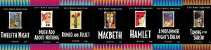 Title pages of books in the 60 Second Shakespeare series. For teachers, there are now condensed versions of Shakespeare plays that might be easier for some students to read: http://www.fivestarpublications.com/shakespeare/sixty.html