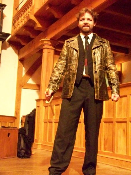 When creating any character, you have to decide how (s)he walks and talks. Most Macbeth’s I’ve seen are big, heroic guys, and I’m not big and imposing. I talked to one of my mentors at American Shakespeare Center and he suggested that maybe Macbeth has a bit of a Napoleonic Complex. This made a lot of sense to me. I thought about how Macbeth gets honored at the beginning of the play; what if he just got lucky killing the Norwegians? What if deep down, he doesn’t feel he deserves to be honored just for killing in war? That kind of self hatred and desire for approval could easily lead to violent behavior. I therefore based my physical choices on alternately shrinking and sulking when Macbeth feels low, and trying very hard to look big and imposing for the rest of the play.