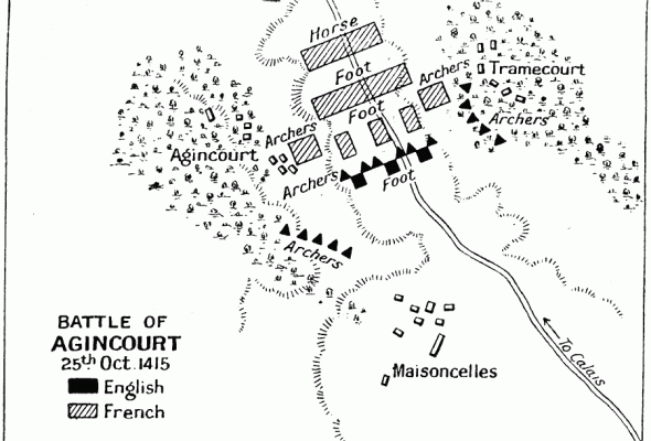 Well Agincourt is a castle in France where on October 25th, 1415, King Henry fought a decisive battle that helped him conquer all of France. For more info on the battle, click here to read this article from the Telegraph.