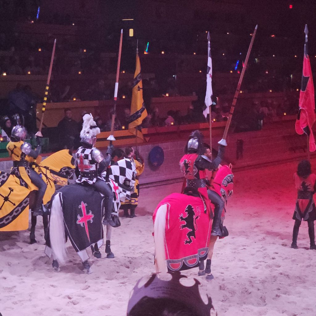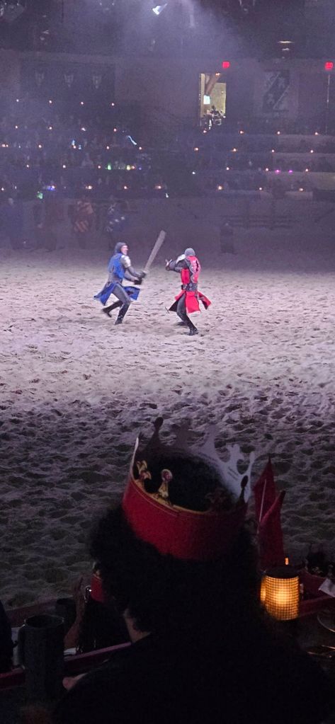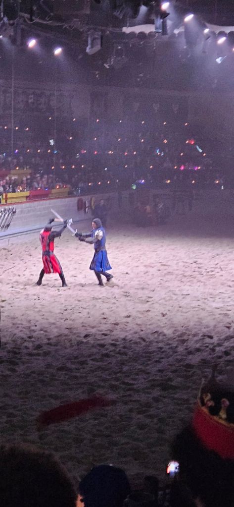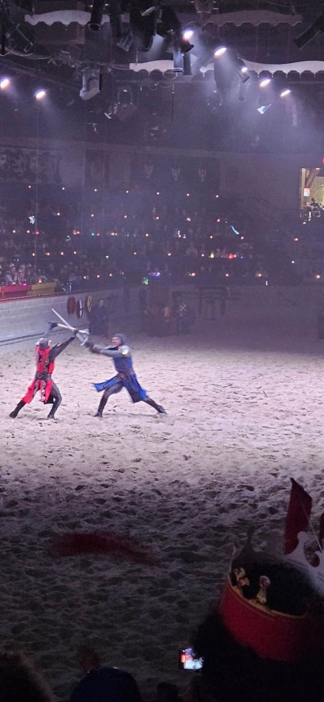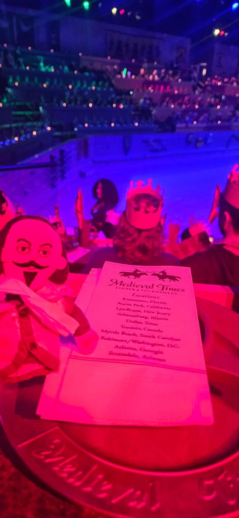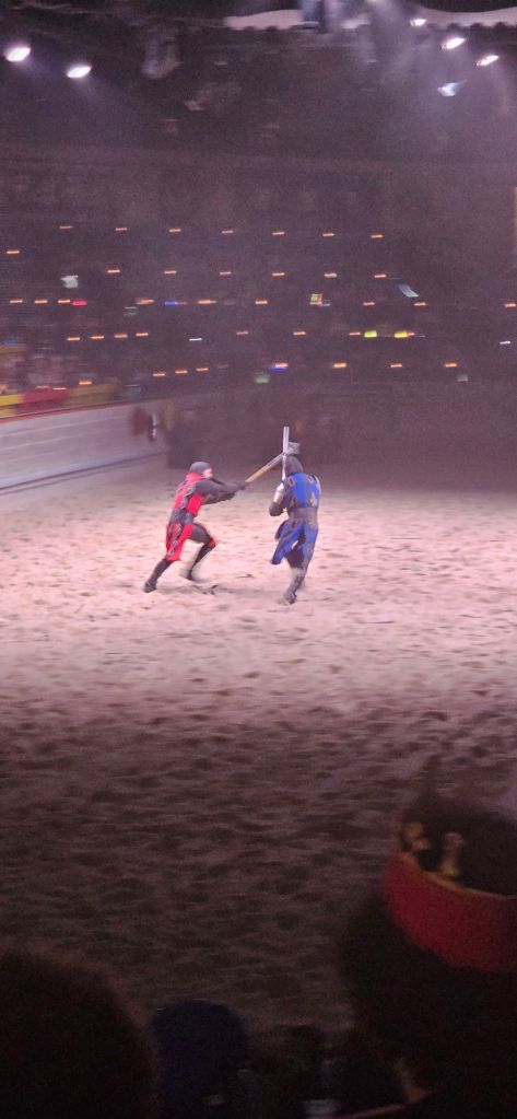 In many ways, Medieval Times is a campy, theme park-esque place. Done’t get me wrong, I love this place and puppet Shakespeare and I enjoyed it immensely, but from a historical perspective, Medieval Times has more in common with Disney Land than British history. That said, it still contains a nod to this ancient culture that praised and highly ritualized the concept of judicial combat.