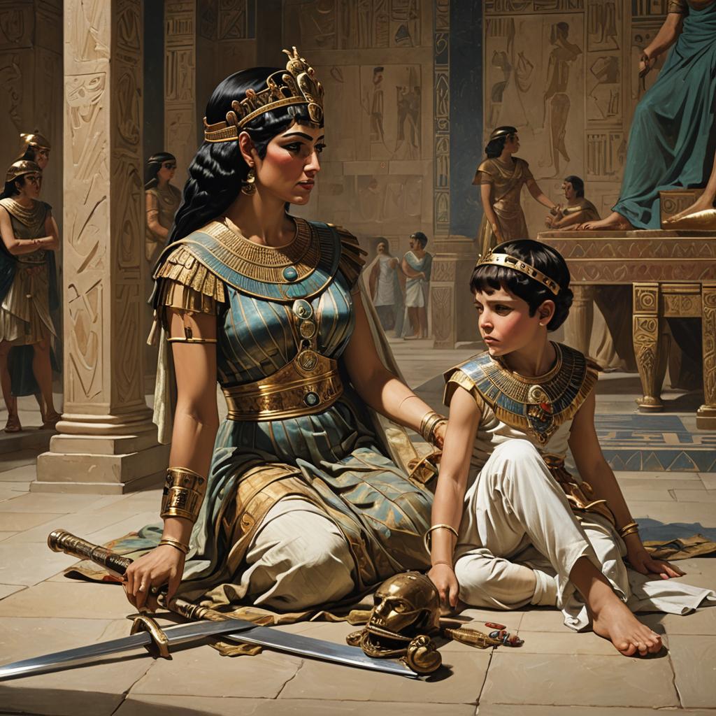 Cordelia and Lear re-united (AI art)Draco Malfoy as Coriolanus (AI art)Harry Potter As Henry V (AI Art)Hamlet as a Ravenclaw student at HogwartsArtwork of Cleopatra and her son Cesarian (Made with Night Cafe)Luke Skywalker as Hamlet (AI)