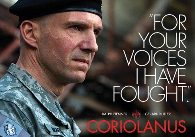 By Contrast, Ralph Fiennes takes a much more authoritarian and cruel route in the film Coriolanus, which Fiennes also directed: