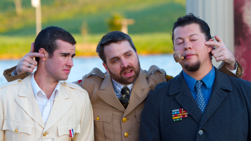 Play Summary The handsome soldiers of Don Pedro of Aragon have come back to rest from war at the home of Signior Leonato, but a merry war begins between Signior Benedick, a witty lord, and Lady Beatrice, a confident and brilliant lady. They tease, torment, and at the same time titillate each other, which gives the prince the idea to try and set them up just by making them overhear each other’s false profession of love. Unfortunately, evil is lurking in the form of Don John, who wants to destroy the other pair of lovers in the play, Hero and Claudio by slandering them. But all ends well with the help of a wise friar, and a bunch of stupid watchmen, overhear yet another conversation that gives the game away. In short, this show is basically a long game of “he said, she said.”