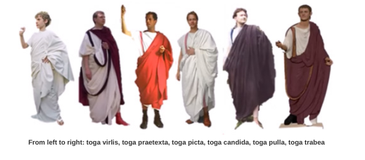 In most movies, and pictures set in Rome, we see rooms full of men wearing white togas, especially in the Senate. However, togas gradually evolved into a variety of styles and colors and helped indicate a Roman man’s status and maturity.