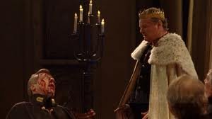 Shakespeare wrote King Lear at the same time that King James was trying to unite England and Scotland, which is why a big theme of the play is how foolish it is to divide a kingdom. In Season three of Slings and Arrows, the Lear production has to share the theater with a new musical about addiction (loosely inspired by Rent). As you can see in this clip; while they rehearse this corny, ridiculous musical, Charles is telling the story of Shakespeare’s King Lear.